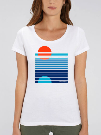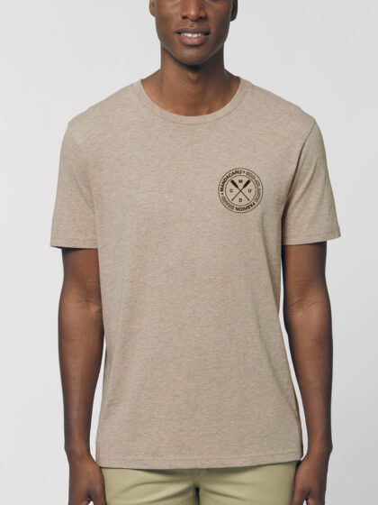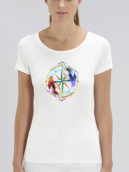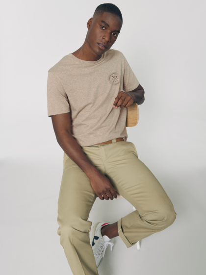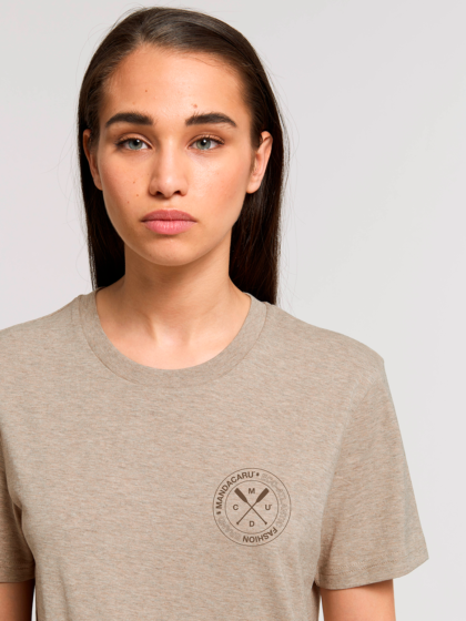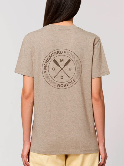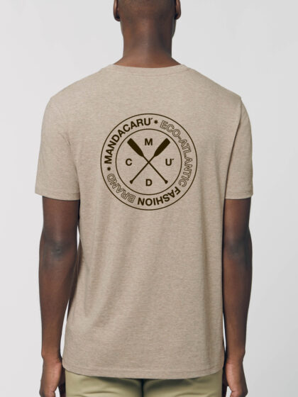 Camiseta de algodón 100% ecológico y cuello redondo, color blanco roto. Tejido Single Jersey de 155gr. Certificación GOTS de algodón orgánico y producción ética.