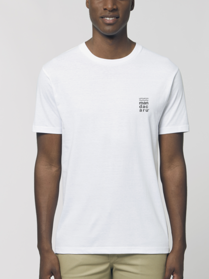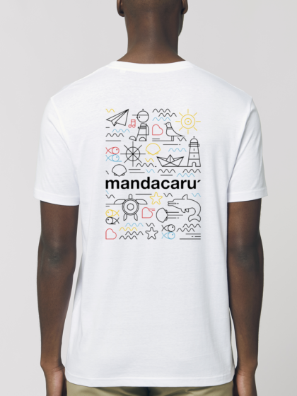 Camiseta de algodón 100% ecológico y cuello redondo, color blanco roto. Tejido Single Jersey de 155gr. Certificación GOTS de algodón orgánico producido en India; certificación Fair Wear Foundation de Comercio Justo y fabricación ética. Para la serigrafía se utilizan lacas ecológicas libres de sustancias dañinas, respetuosas con las personas y el medio ambiente.