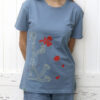 Camiseta de algodón 100% ecológico y cuello redondo, color azul. Tejido Single Jersey de 155gr. Certificación GOTS de algodón orgánico producido en Perú, fabricación ética. Para la serigrafía se utilizan lacas ecológicas libres de sustancias dañinas, respetuosas con las personas y el medio ambiente.