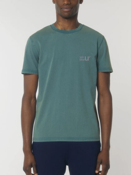 Camiseta de algodón 100% ecológico y cuello redondo, color blanco roto. Tejido Single Jersey de 155gr. Certificación GOTS de algodón orgánico y producción ética. Para la serigrafía se utilizan lacas ecológicas libres de sustancias dañinas, respetuosas con las personas y el medio ambiente.