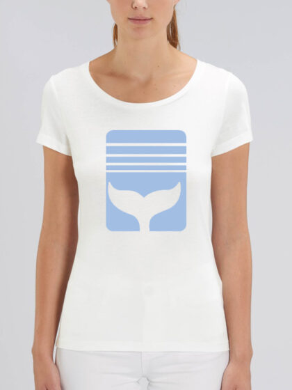 Camiseta de algodón 100% ecológico y cuello redondo, color blanco roto. Tejido Single Jersey de 155gr. Certificación GOTS de algodón orgánico y producción ética.